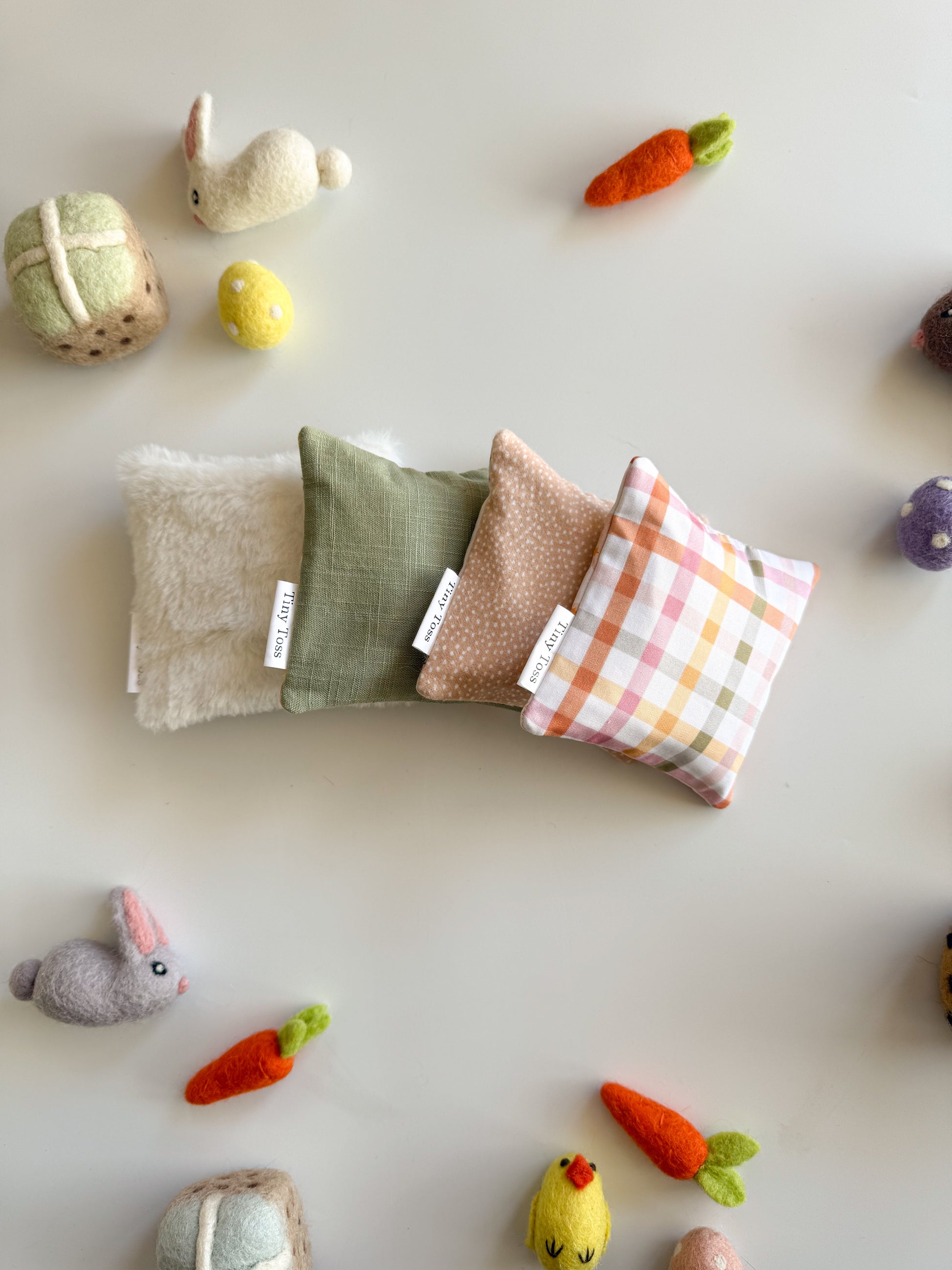 Each sandbag is thoughtfully made using layered fabrics and filled with fine play sand to create a soft yet sturdy weight, perfectly sized for small hands. Designed to grow with your child, Tiny Toss sandbags encourage open-ended play through tossing, stacking, balancing, colour exploration, and imaginative storytelling.