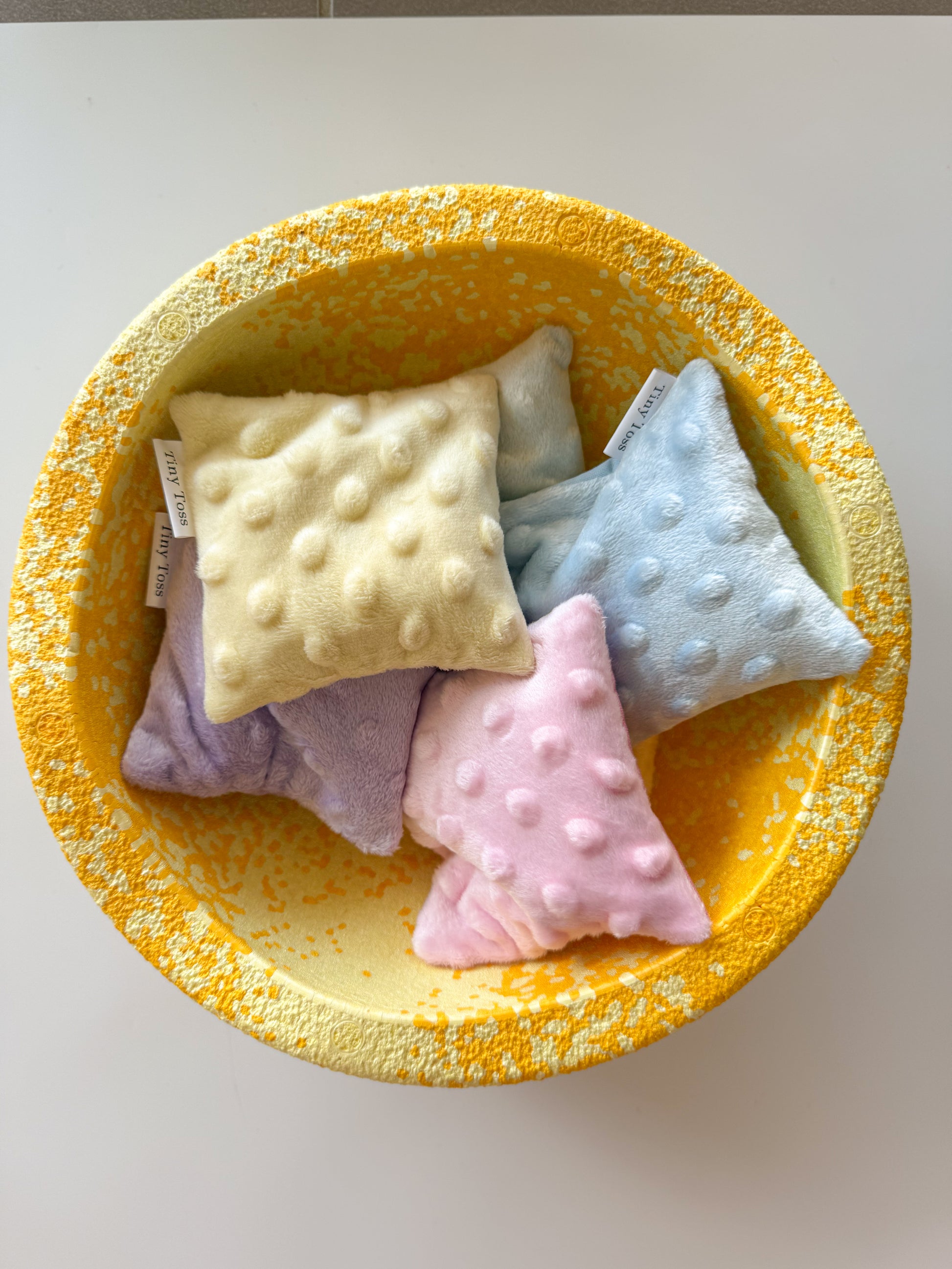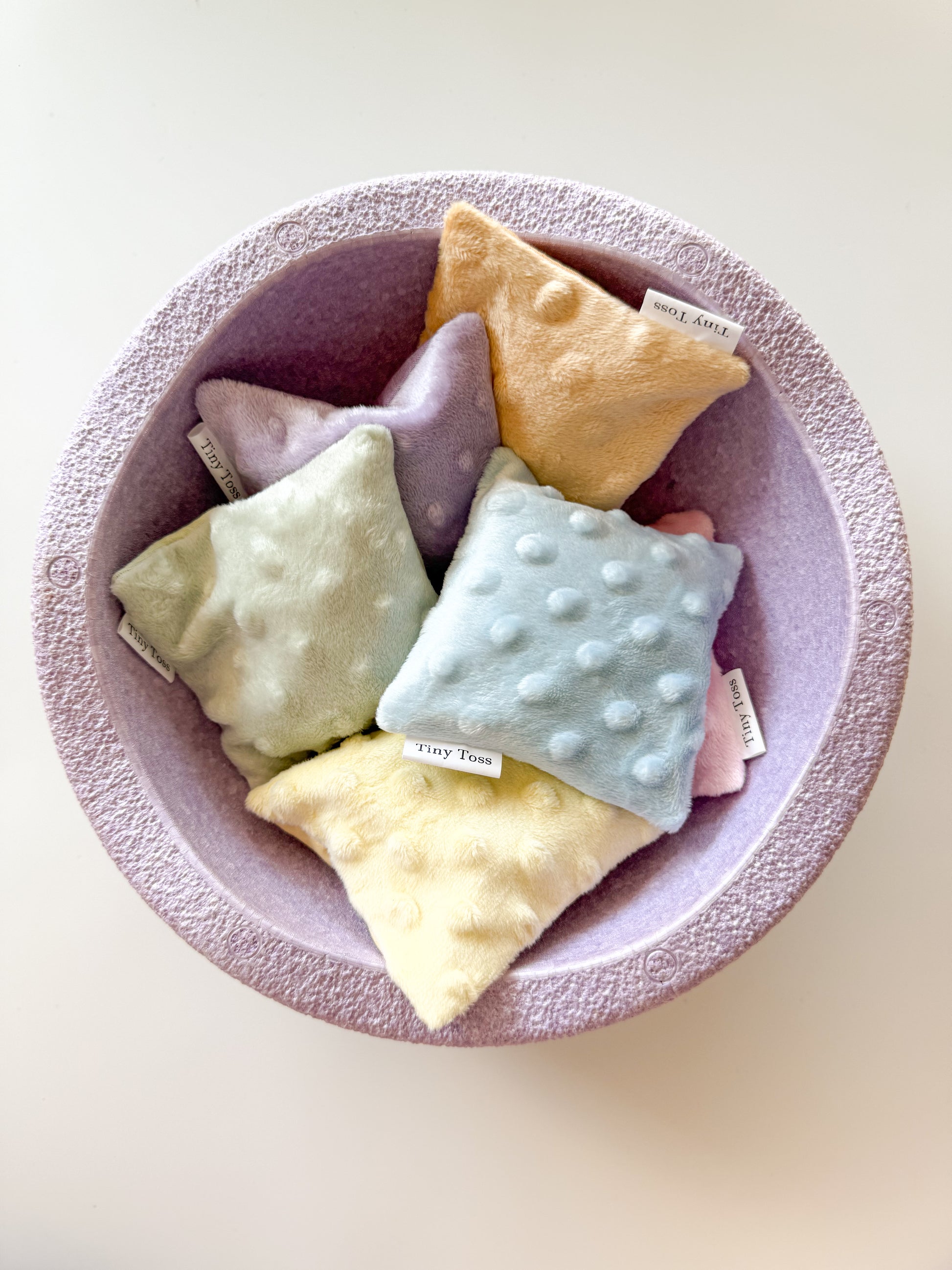 Say hello to calm, cuddly playtime with our Pastel Set – a dreamy collection of six plush sandbags in beautifully soft pastel tones. Made with sensory-friendly minky dot fabric, these sandbags offer both visual charm and irresistible texture for tiny hands to explore.