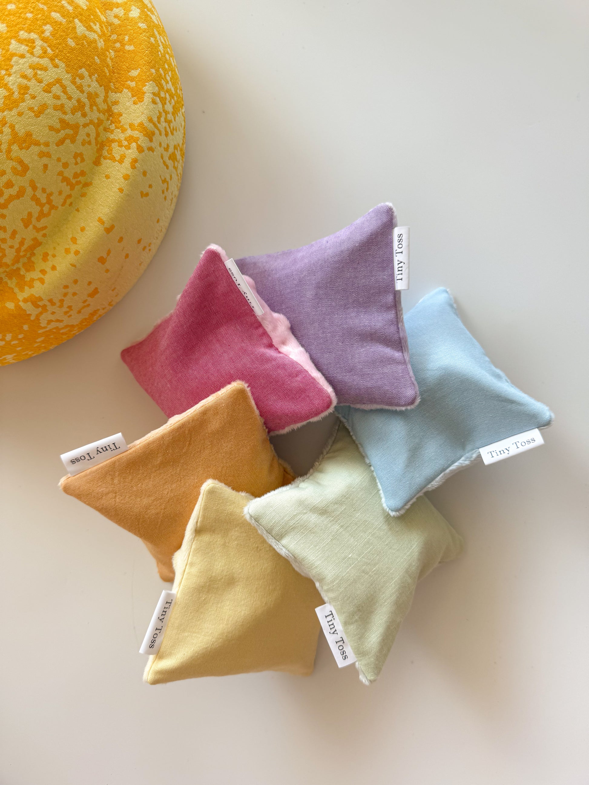Each one is perfectly weighted and thoughtfully handmade, making them ideal for learning to toss, stack, carry, and squish. Whether you're building a sensory bin, or just want a screen-free activity, this set brings both style and softness to your space.