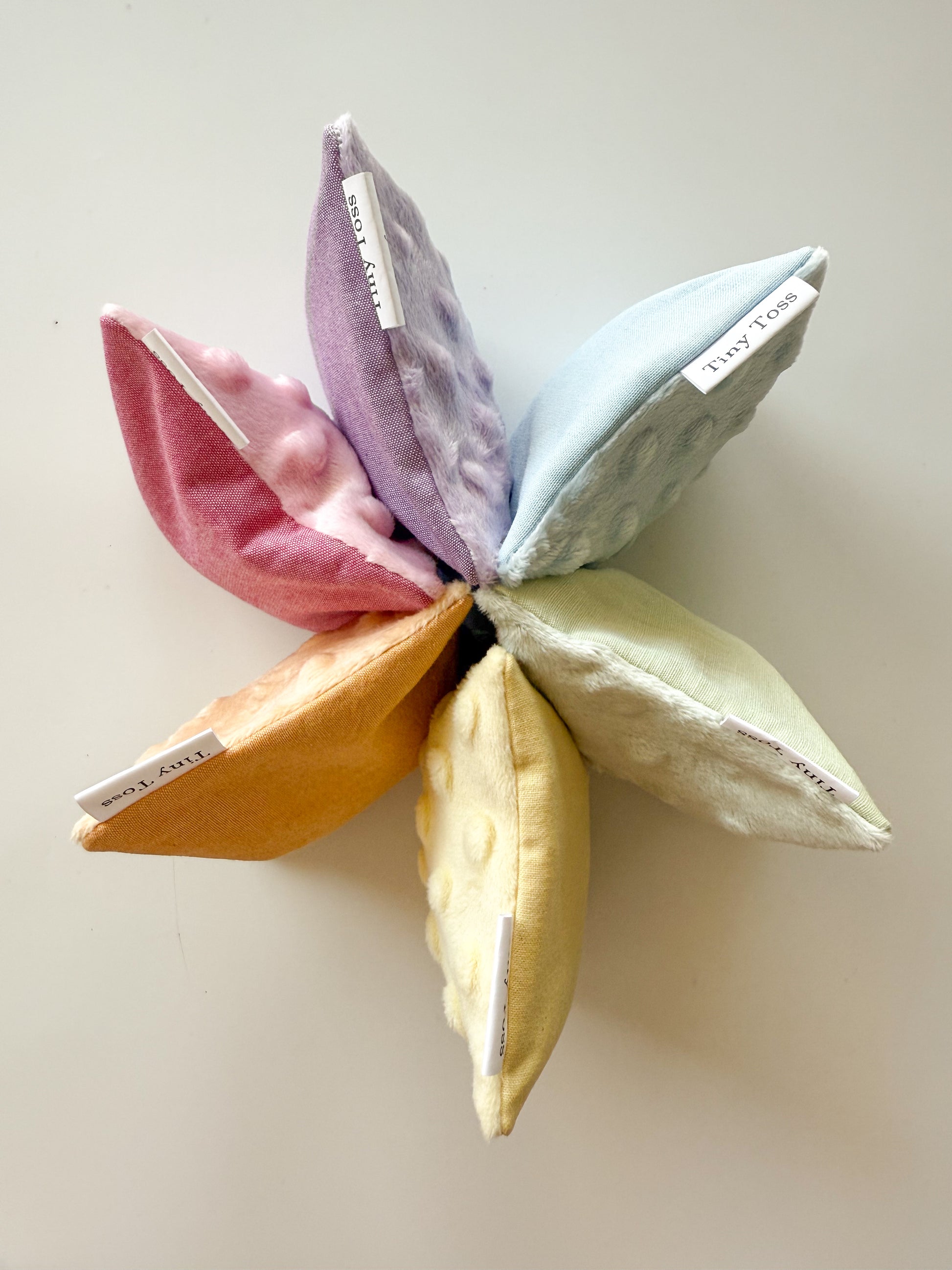 Give your little one a sensory play experience that’s as soft as it is sweet with the Tiny Toss Pastel Set.