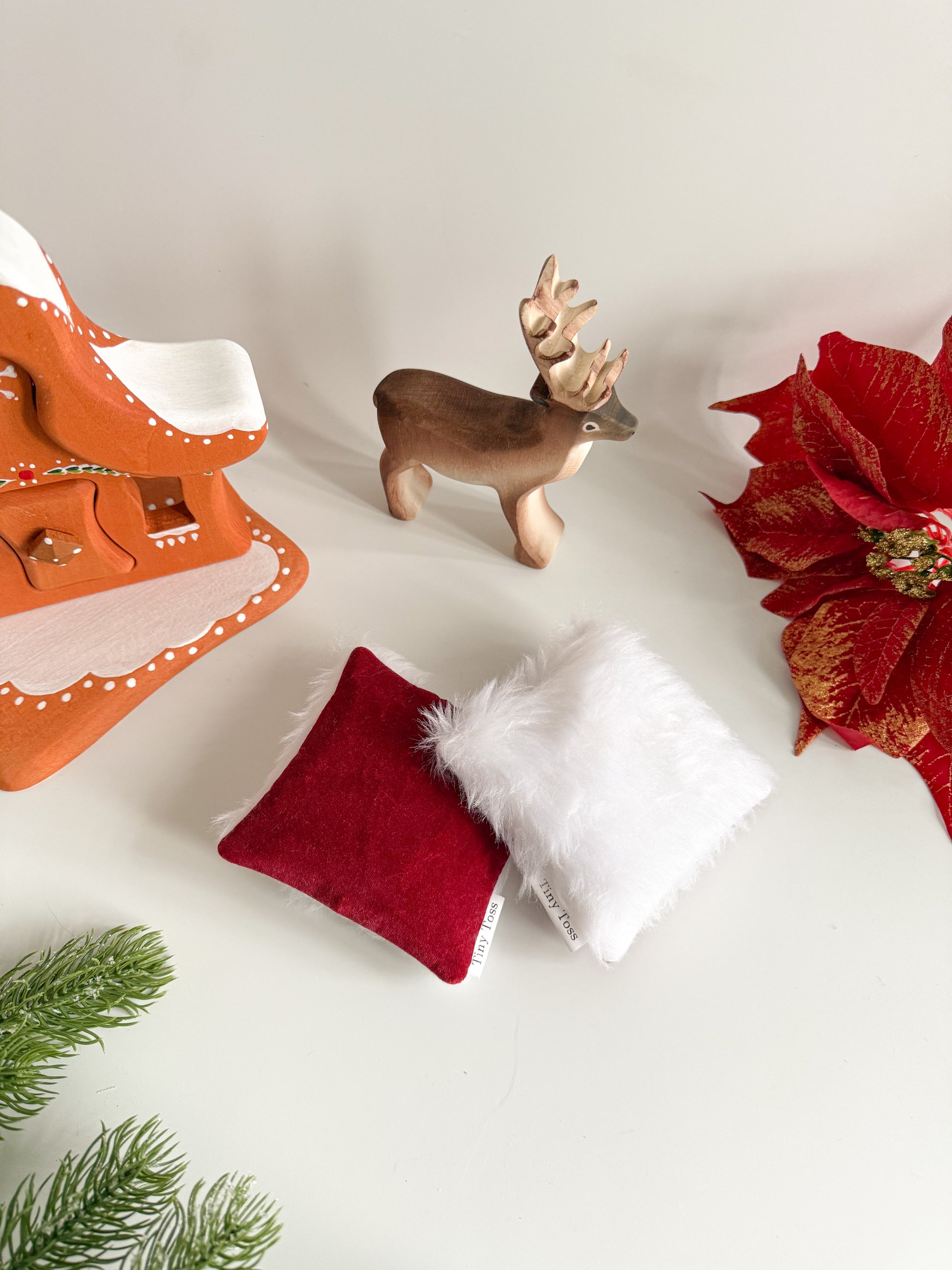 A cosy little nod to the big man himself. Santa Snuggles pairs rich Christmas red with the softest fluffy white trim — a tiny handful inspired by Santa’s iconic suit. Perfect for festive play, stacking, tossing, and creating your own Christmas stories all season long.
