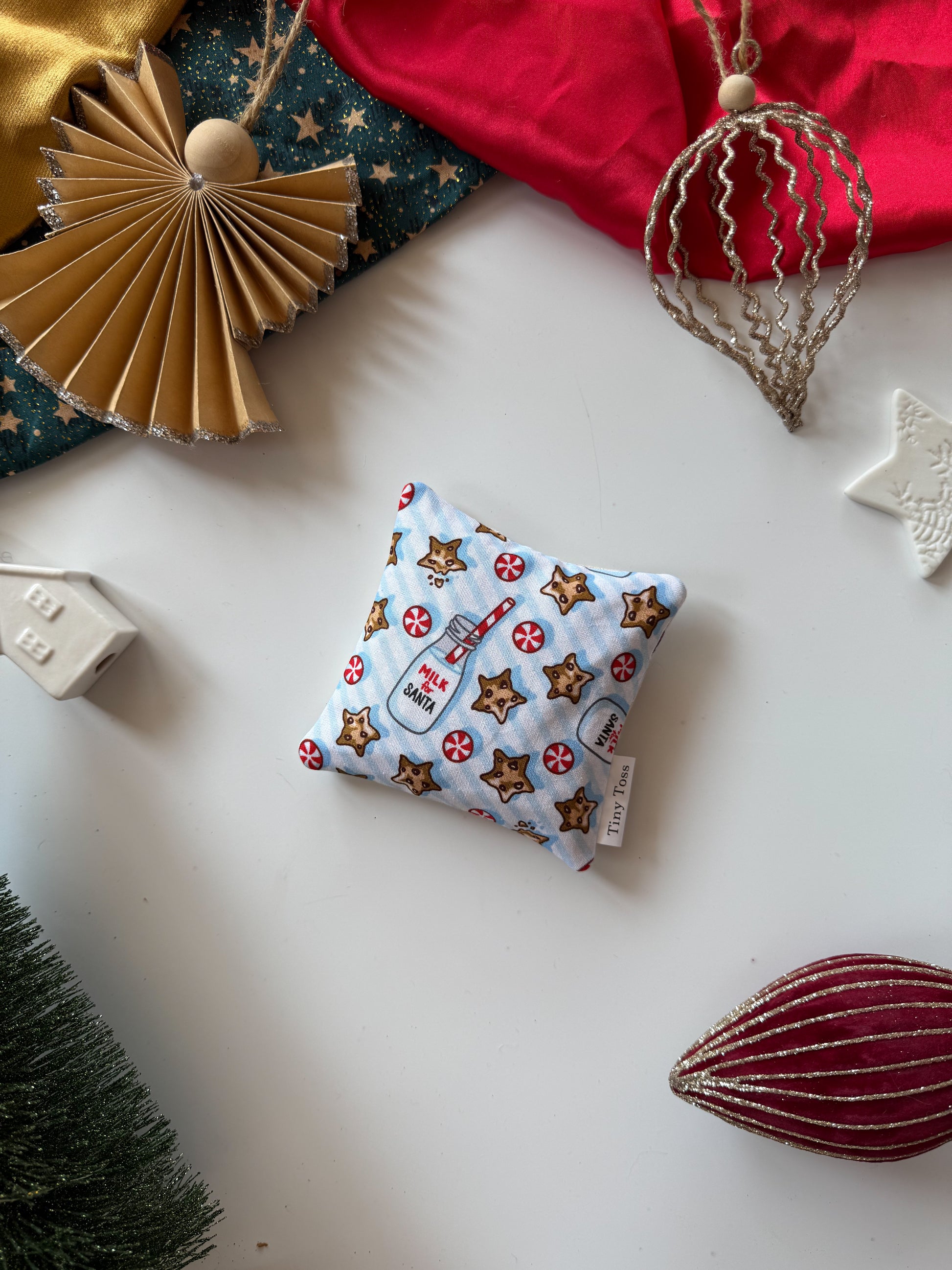 A little sweet, a little magical — this festive favourite celebrates the tradition of leaving milk and cookies for Santa. With its soft blue front sprinkled with stars, peppermints, and Santa’s snack, it’s a playful nod to Christmas Eve magic.